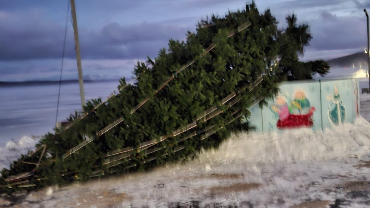 В Мончегорске главная елка города, украшавшая Ленинградскую набережную, устала от суровых погодных условий и «прилегла» отдохнуть, сообщили в администрации города Мончегорска.