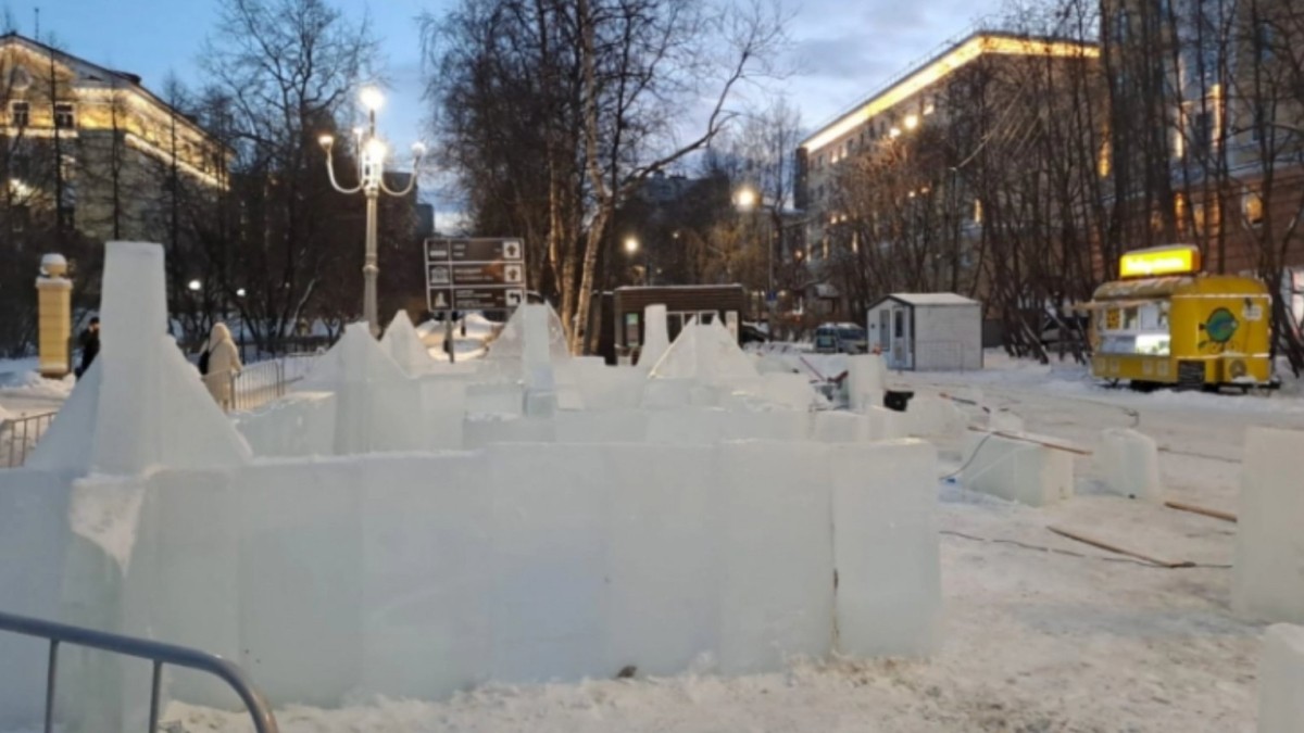 На улице Воровского в столице Заполярья начался монтаж ледяных скульптур.