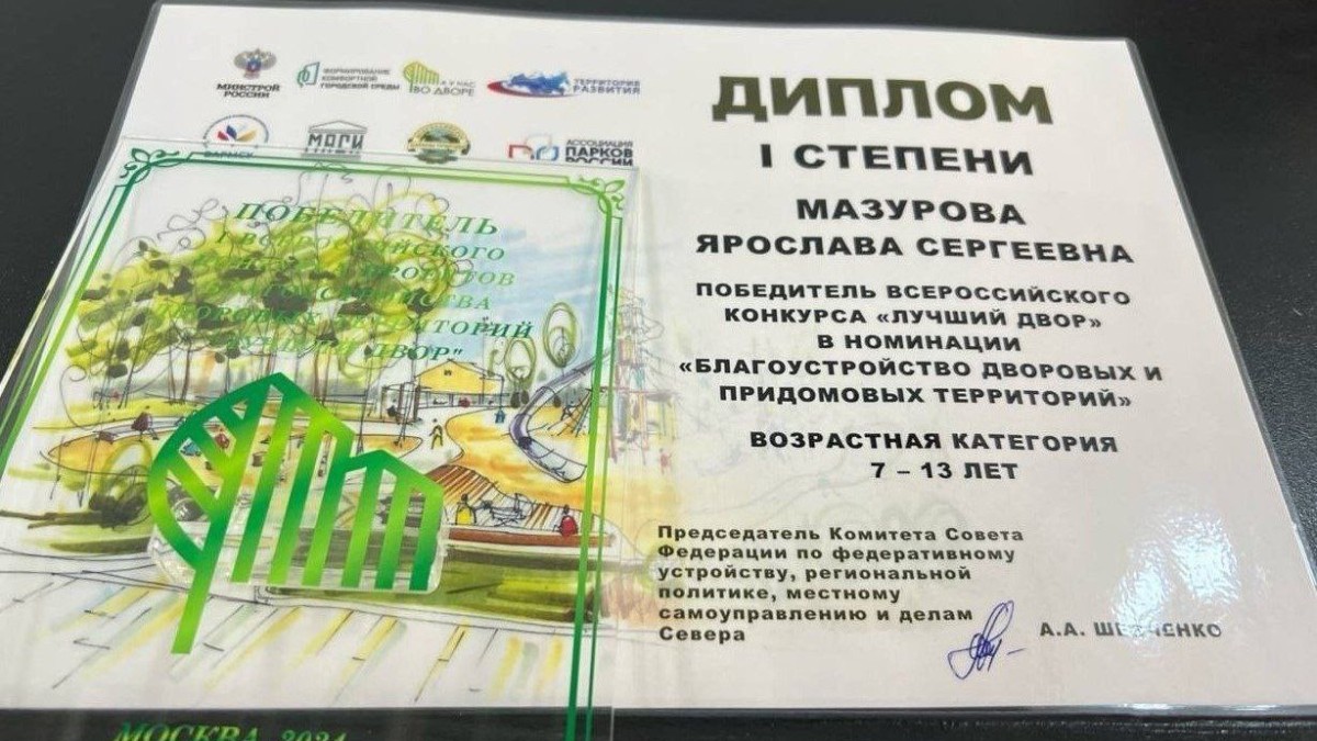 Ученица снежногорской школы № 269 Ярослава Мазурова стала победительницей всероссийского конкурса «Лучший двор» в номинации «Благоустройство дворовых и придомовых территорий», завоевав диплом I степени в возрастной категории 7-13 лет.