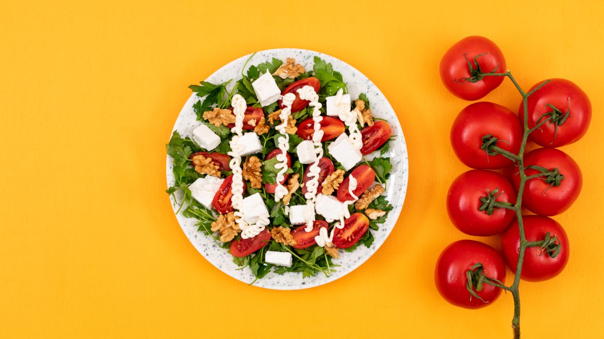 Когда-то я приготовила этот салат на праздничный стол, и теперь он в числе моих любимых. Готовится за считанные минуты, а ингредиенты простые и недорогие, особенно если сейчас сезон помидоров.