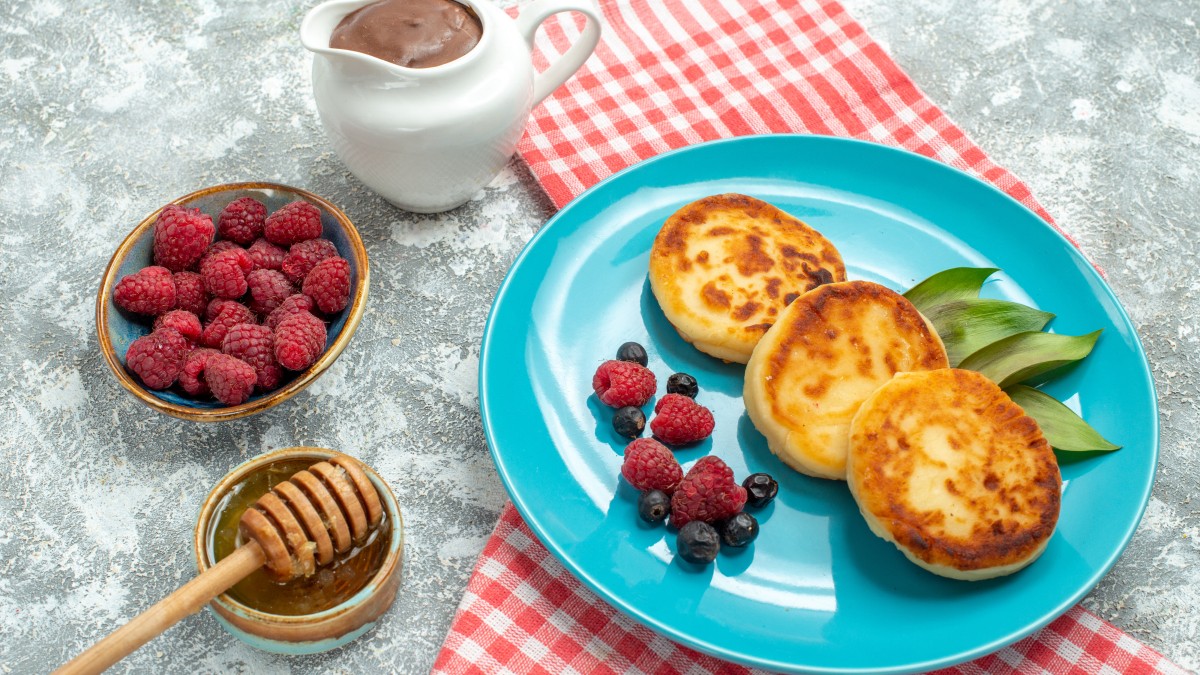 Подавайте теплые сырники с ягодным пюре, вареньем, медом, сметаной или свежими ягодами.