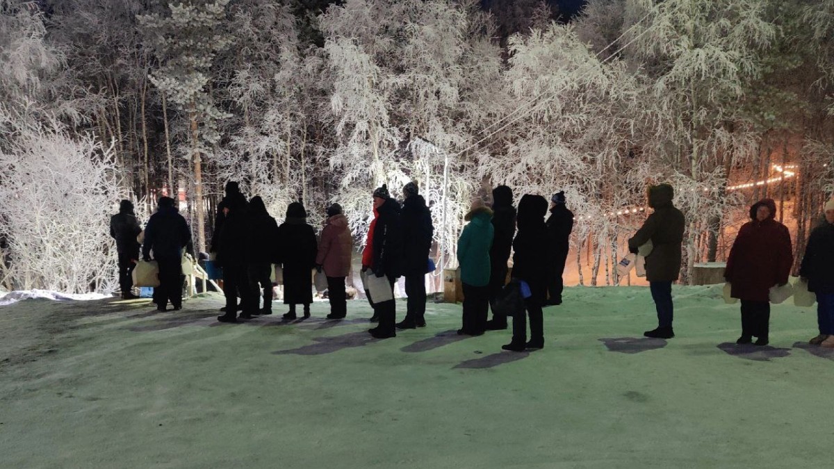 Северяне вынуждены часами стоять в огромной очереди к местному роднику в морозную погоду.