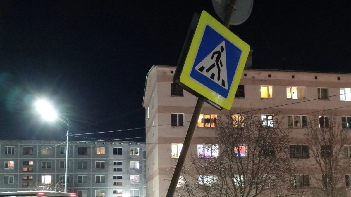 В Североморске на улице Сгибнева, 11, местные жители обнаружили «Пизанский» дорожный знак, накренившийся в сторону пешеходного перехода и продолжающий оставаться на положенном месте вопреки законам физики.