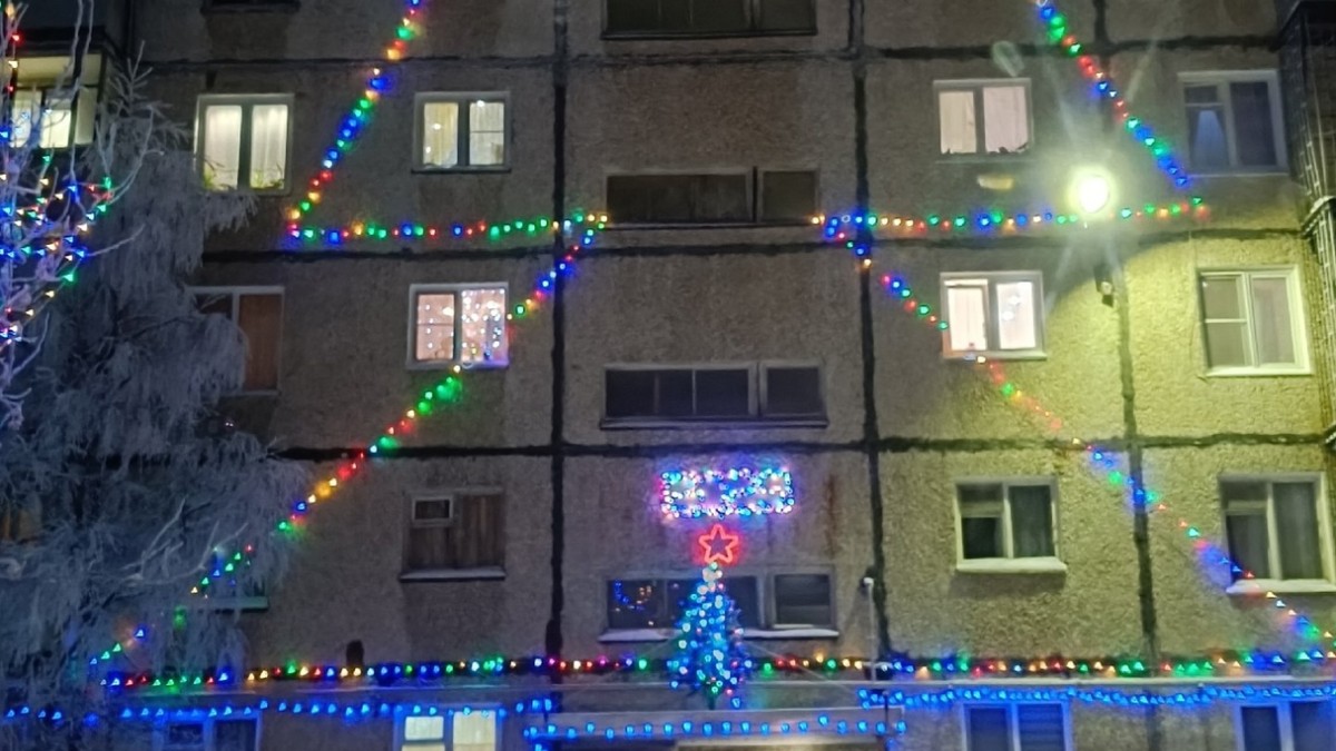 В Ревде на Нефедова 6 выросла елка в девять этажей, сообщили в паблике Болталка 51. Световая иллюминация в форме елки заняла практически все здание жилого дома начиная с козырька подъезда.