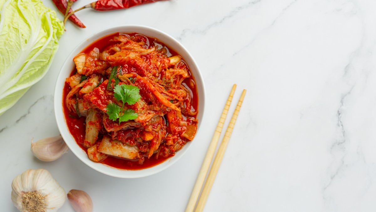 Кимчи — это не только вкусно, но и полезно благодаря процессу ферментации, который делает блюдо богатым пробиотиками.