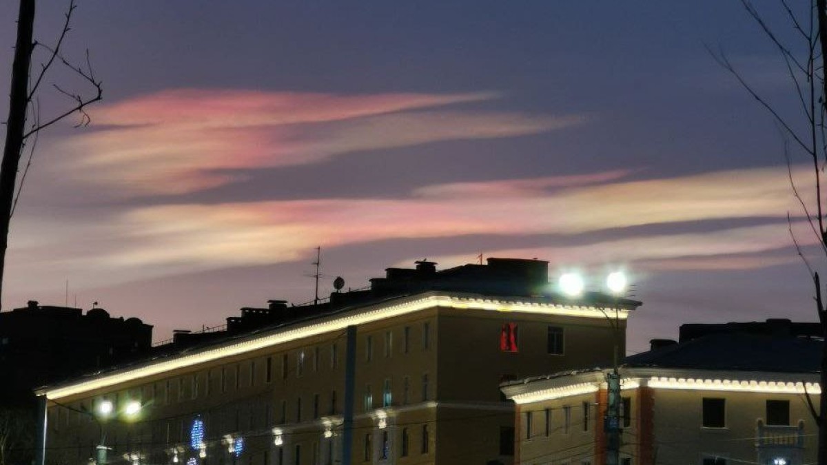 Сегодня в первой половине дня мурманчанам и жителям Оленегорска, Кировска и Апатитов посчастливилось запечатлеть удивительное атмосферное явление — полярные стратосферные облака розового, перламутрового и светло-зелёного оттенка.