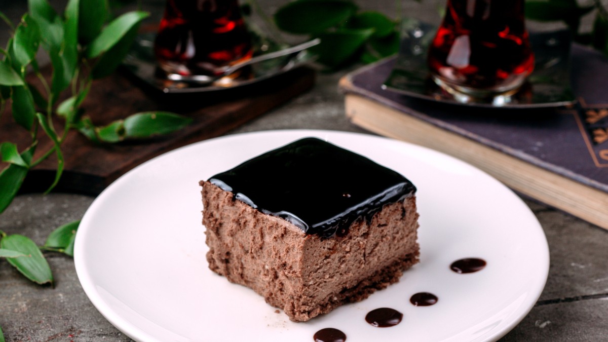 - Коржи: 200 г муки, 40 г какао, 180 г сахара, 1 яйцо, 200 мл кефира, 80 г масла, 150 мл кипятка, 1,5 ч. л. кофе.