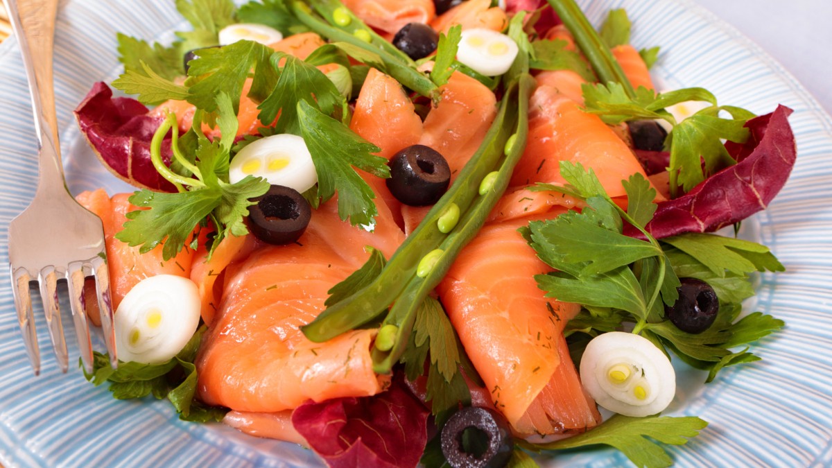 Салат лучше всего готовить в глубокой миске, так удобно будет перемешать ингредиенты. Туда же отправьте мелко нарезанную семгу.