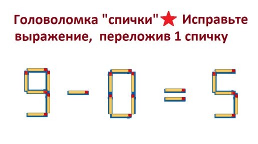 Задача: переложить одну спичку так, чтобы уравнение стало правильным. Задача выглядит простой, но многих она озадачила.