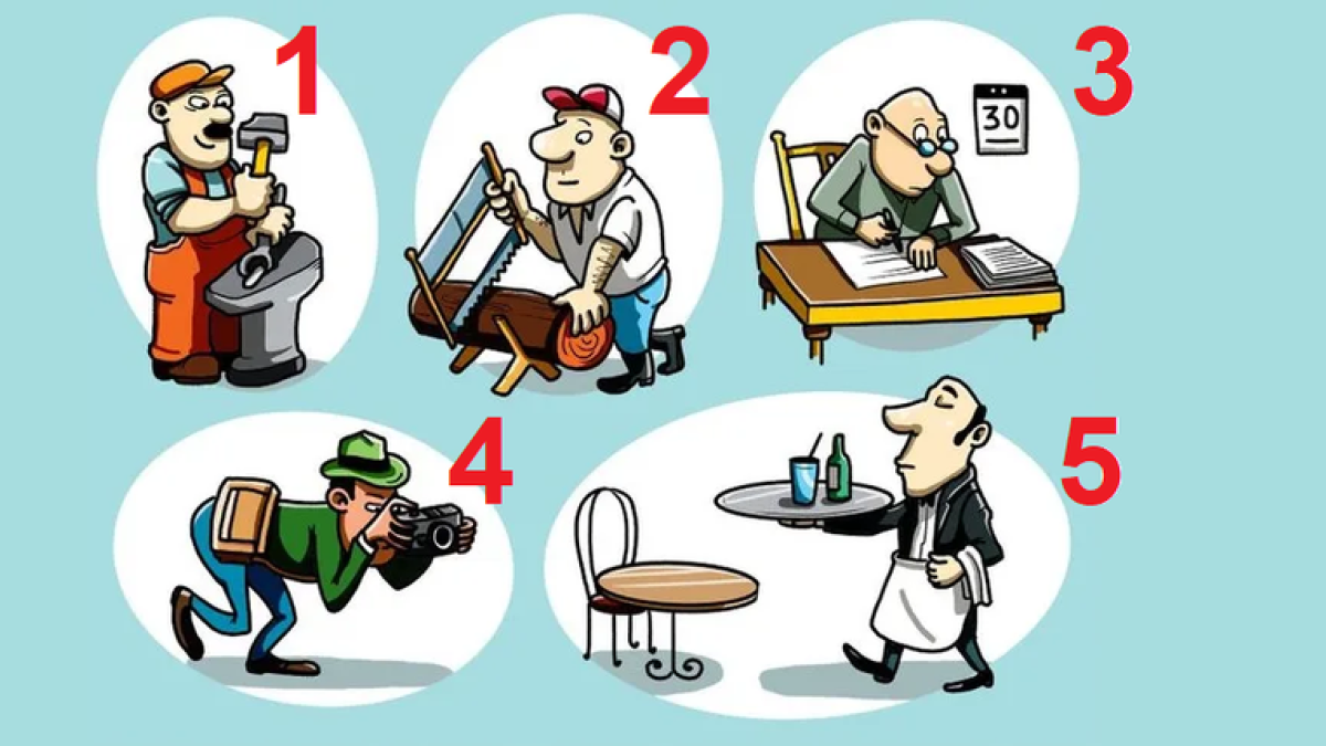 Нужно понять, кто из пяти человек, изображенных на картинке — левша.