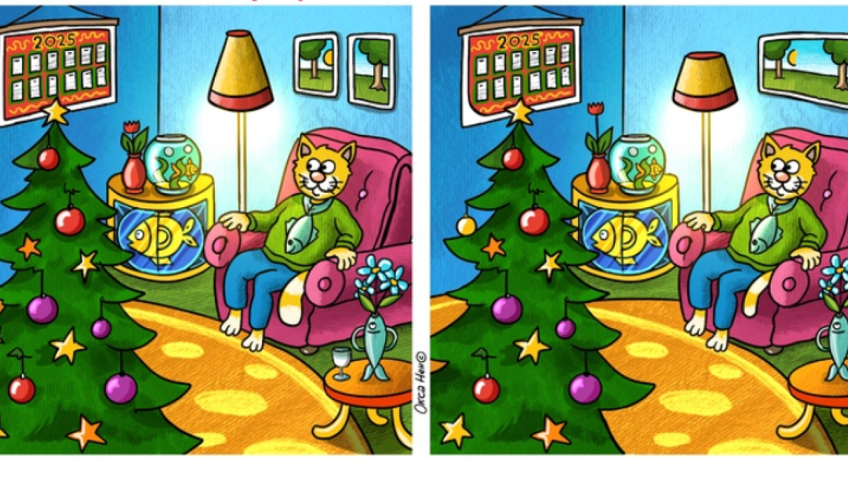 Посмотрите на эту яркую картинку в новогодней тематике. Именно она поможет вам восстановить внимание и память. Попробуйте ради интереса поставить секундомер. Постарайтесь как можно быстрее найти 11 отличий на этих картинках.