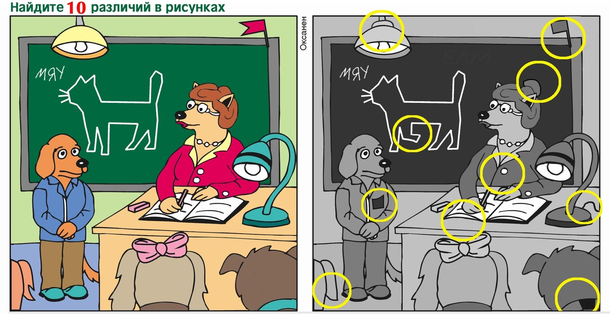 Как только сможете найти все отличия, посмотрите правильный ответ с картинкой по этой ссылке.