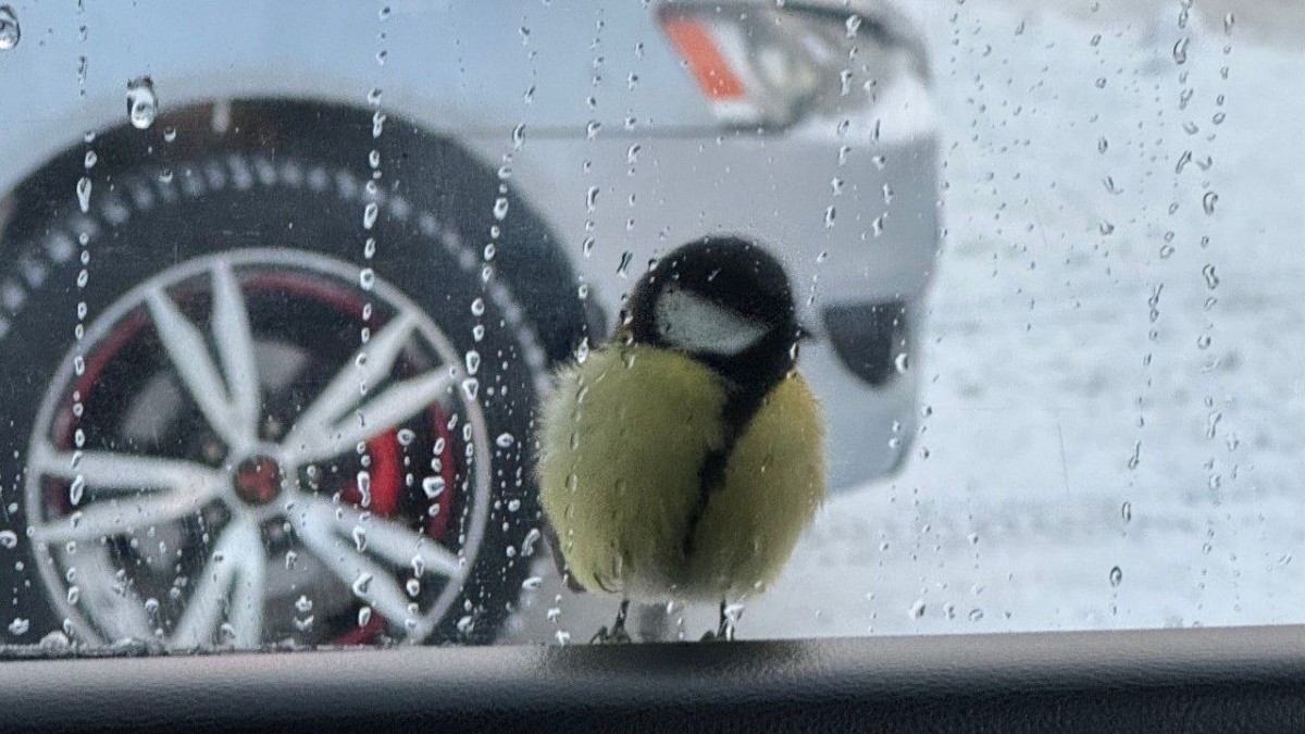 Прелестная желтогрудая синичка, обитающая в районе заправочной станции Снежногорска, примерила на себя роль фотомодели.