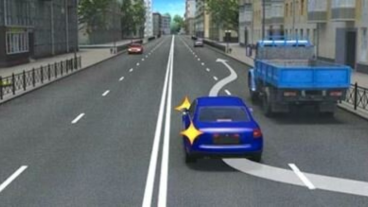 Вы перестраиваетесь в левый ряд для обгона. После завершения манёвра нужно сразу выключить левый поворотник, чтобы другие водители не решили, что вы собираетесь ещё и повернуть налево или развернуться.