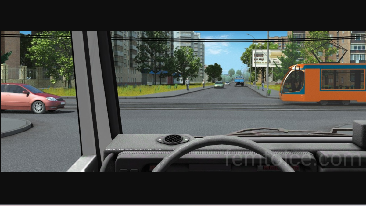 А вот трамвай является помехой справа для нас — его необходимо пропустить согласно п. п. 13.11 ПДД. Кроме этого, на перекрестке равнозначных дорог трамвай имеет преимущество перед безрельсовыми транспортными средствами независимо от направления его движения. Всегда следует помнить, что у трамвая почти всегда есть преимущество. Есть исключения, но их мало.