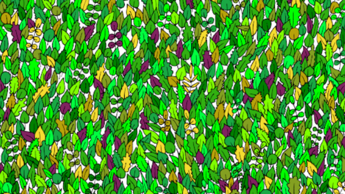 Попробуйте внимательно присмотреться к картинке. На первый взгляд можно заметить только множество разных листиков.