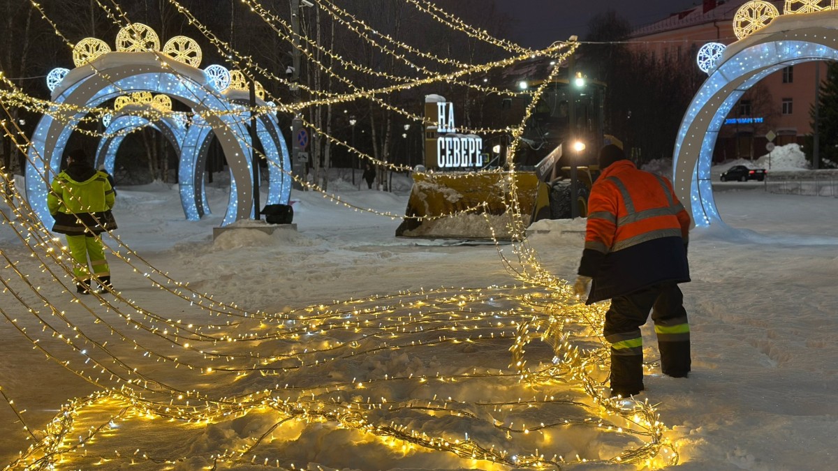 Первым городом Мурманской области, приступившим к демонтажу новогодних конструкций, стали Апатиты.