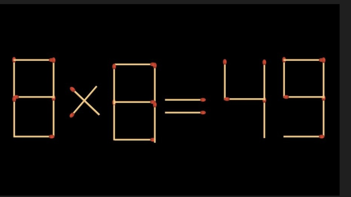 Из спичек собрана задачка: 8×8=49. Таблица умножения говорит, что такого не бывает. Все дело в том, что всего одна спичка стоит не на своем месте. Нужно переложить 1 спичку, чтобы