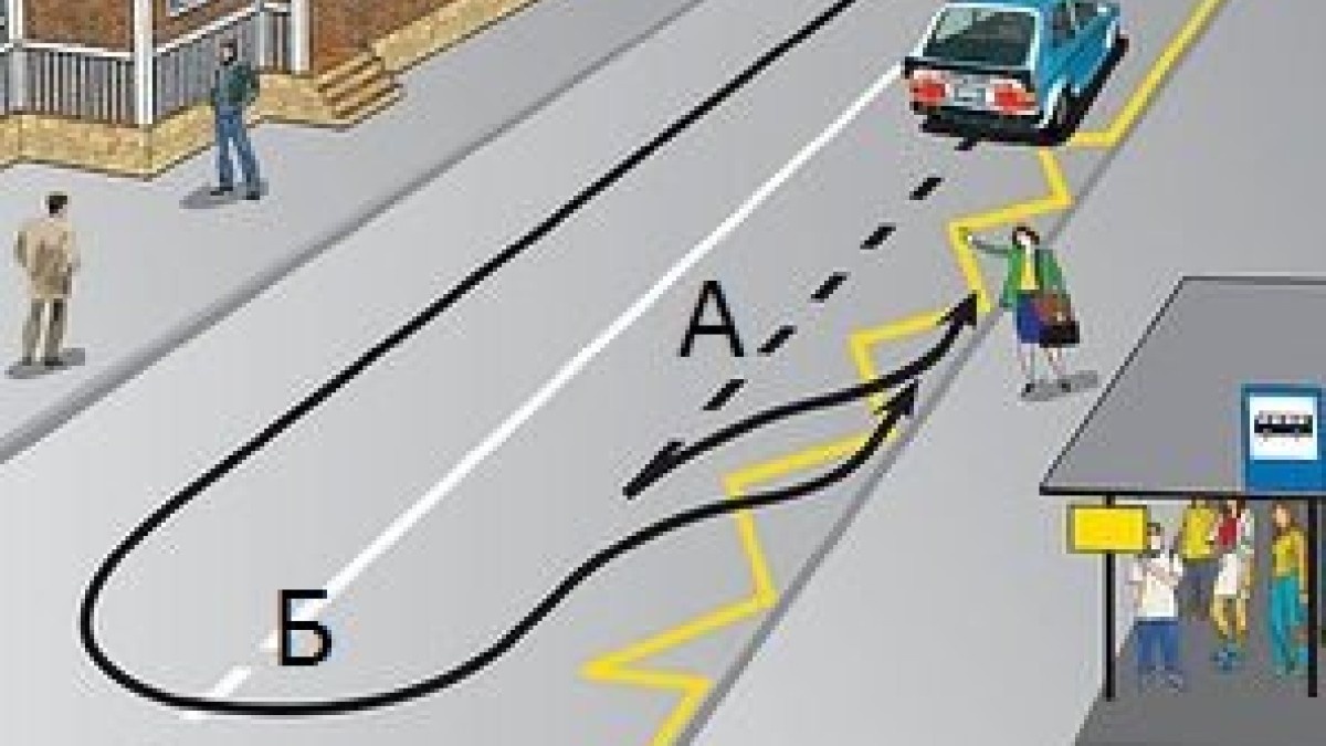 Согласно ПДД, «движение задним ходом в местах остановки маршрутных запрещено». Значит траектория А не подходит, потому что она противоречит ПДД.