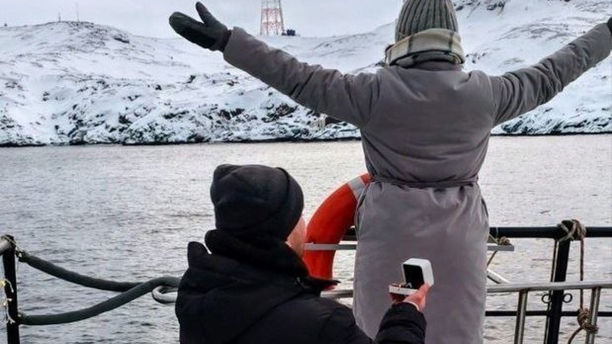 Блогер с многотысячной аудиторией Сабир Агвердиев («whatsabik») сделал предложение своей девушке Юлии во время водной прогулки по Баренцеву морю, проходившей возле побережья Териберки.