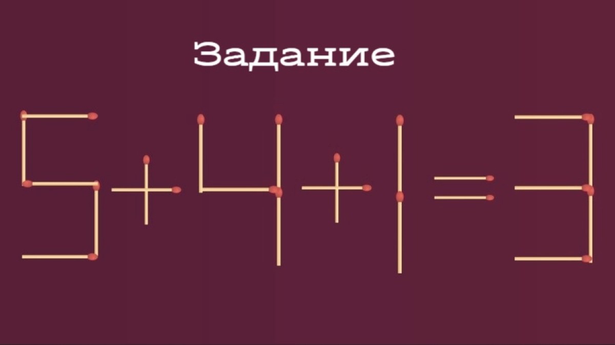 В примере 5 + 4 + 1 = 3 нужно переставить 1 спичку, чтобы уравнение стало верным.