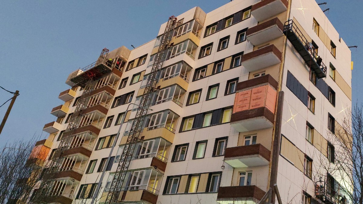 Возведение девятиэтажного дома, расположенного на пересечении улицы Полярные Зори и проспекта Ленина в Мурманске, постепенно подходит к концу.