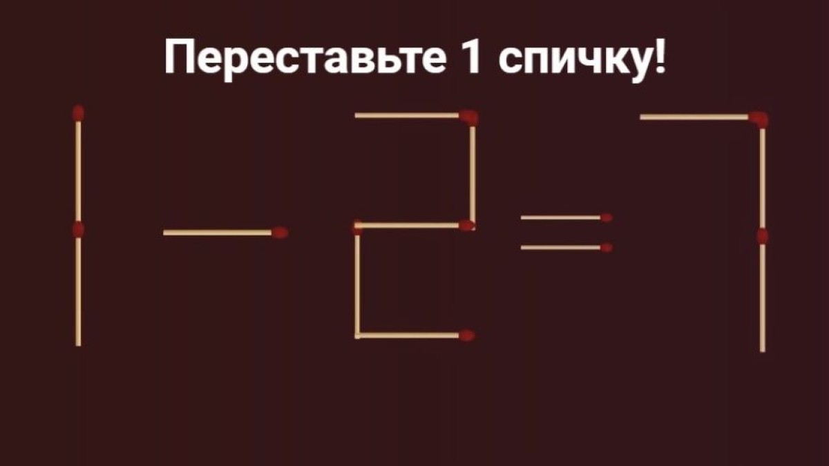 На картине представлено неверное уравнения. Для его решения необходимо найти и переложить спичку так, чтобы пример стал верным. На решение необходимо потратить не больше 12 секунд.