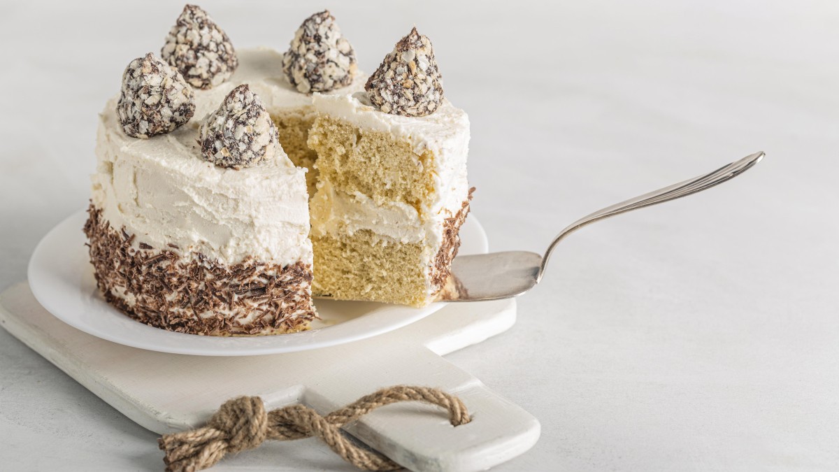 Для приготовления крема потребуются: 250 г жирных сливок (не менее 30%) и ванилин. Для бисквита возьмем: 280г муки, разрыхлитель, соль, корица, 115г слив. масла и немного для смазывания формы, 240 мл молока, 350г сахарного песка, 4 крупных яйца.