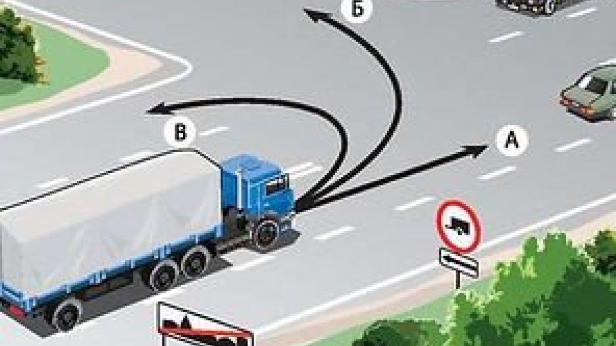 Грузовик может продолжить движение в направлении В.