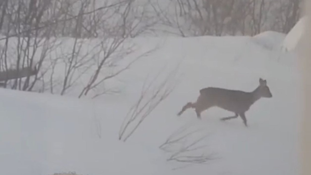 Грациозная косуля, внешне напоминающая диснеевского оленёнка Бэмби, продефилировала прямо под окнами жителей Заполярного.
