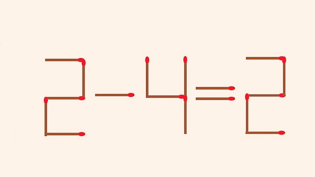 Хотите проверить на себе, правда ли это? Перенесите в другое место одну спичку. Так, чтобы поменять неверное равенство 2–4=2 на верное.
