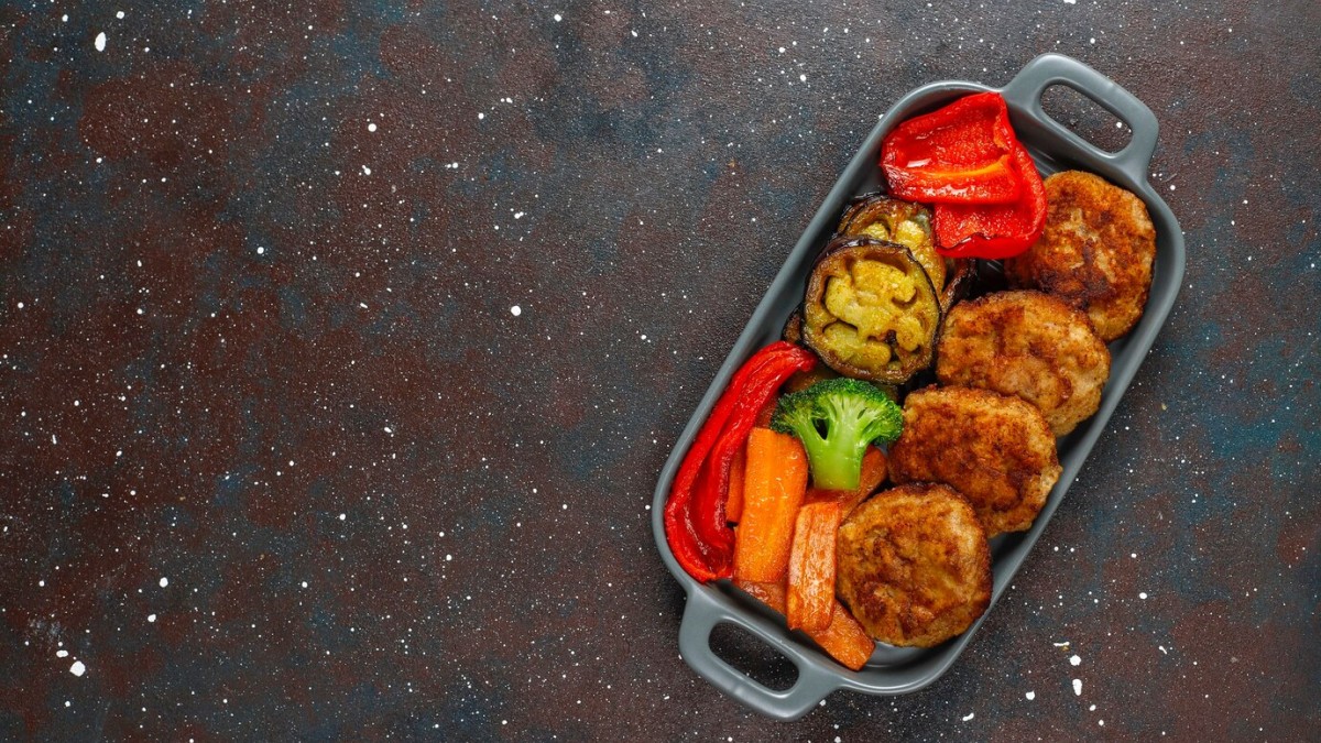 Запекаем котлеты с овощами в духовке