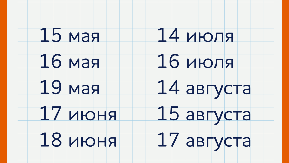 15 мая, 16 мая, 19 мая, 17 июня, 18 июня,