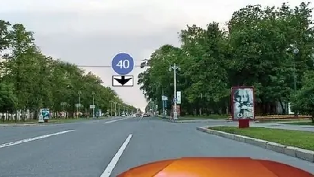 Предел минимальной скорости согласно табличке распространяется только на левую полосу. По правой полосе осуществляется обычный скоростной режим для населённых пунктов — не более 60 км/ч.