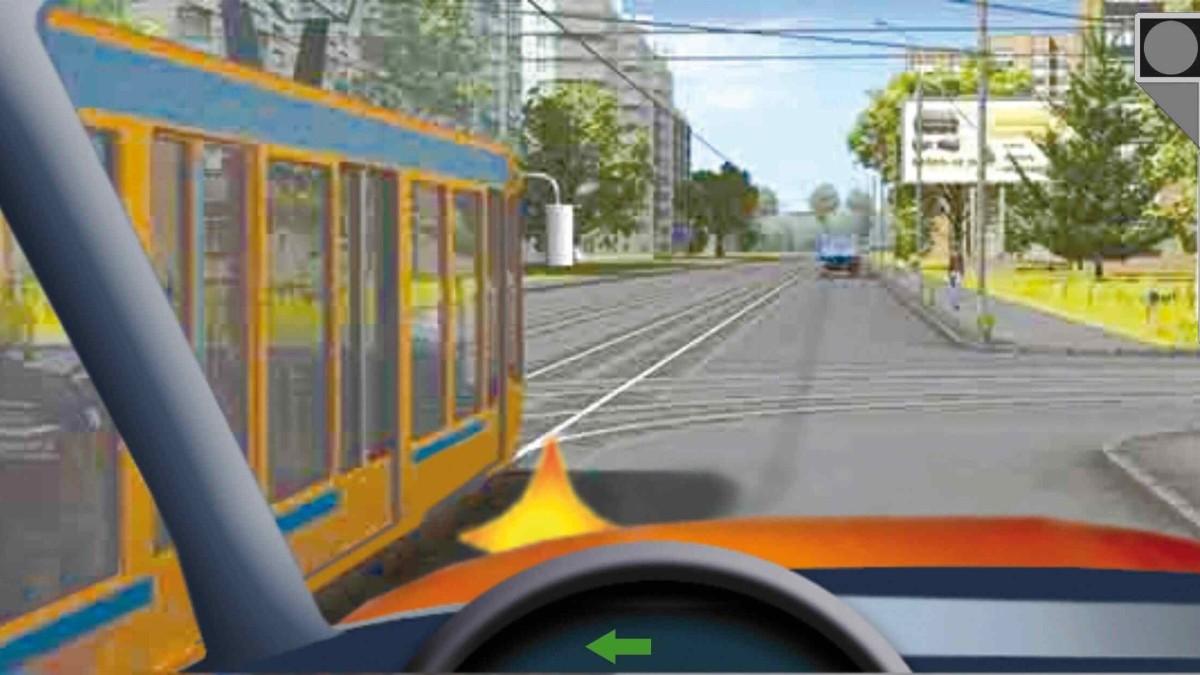 - Уступите дорогу трамваю, выполнив поворот с проезжей части
