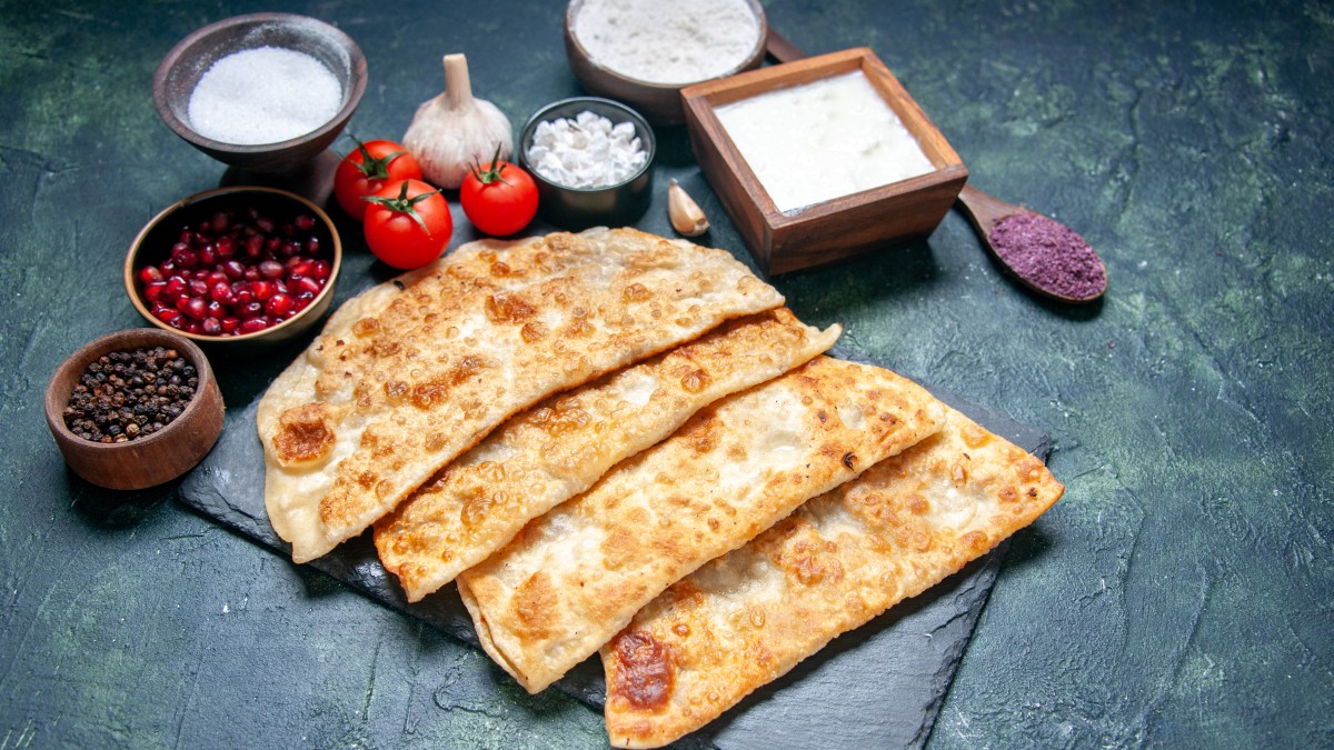 Выложить фарш тонким слоем на один край, смазать края взбитым яйцом, накрыть второй половиной.