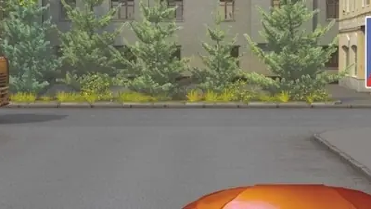Вы выезжаете из жилой зоны, о чём информирует знак «Конец жилой зоны». Уступаете дорогу другим участникам дорожного движения, в данной ситуации — грузовому автомобилю в обоих перечисленных случаях.