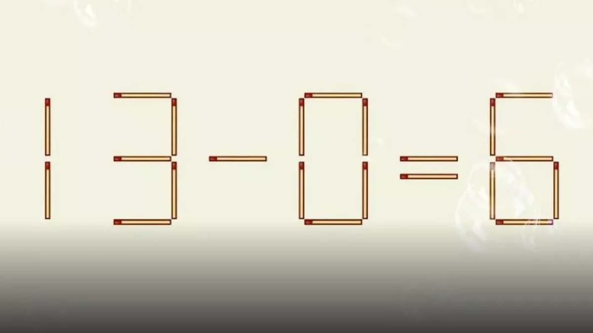 Перед вами выражение: 13−0=6. Но оно, очевидно, неверное. Нужно переставить всего 1 спичку, чтобы равенство стало верным.