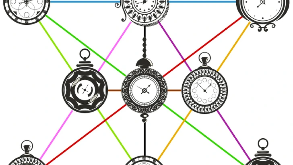 Часы нужно выложить в форме звезды — тогда линии пересечений создадут 10 рядов по 3 штуки.