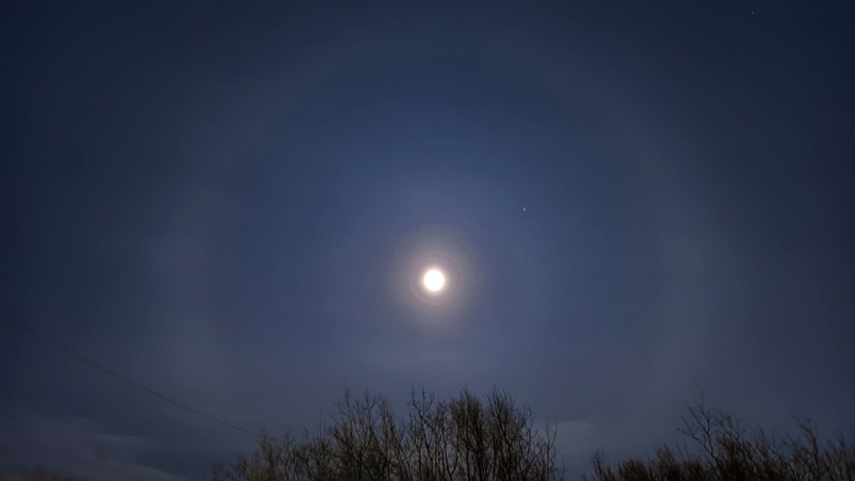 Фотограф из Полярного Оксана Машкина запечатлела на камеру лунное гало, озарившее ночное небо над городом. Спутник нашей планеты предстал перед северянкой в окружении белоснежного сверкающего ореола.