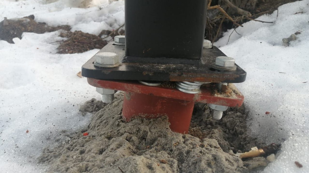 Жительница Североморска пожаловалась губернатору на некачественно установленные опоры освещения возле детской площадки, расположенной в микрорайоне Авиагородок.