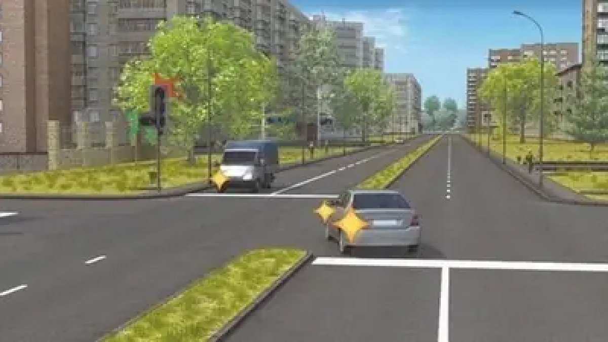 Светофор показывает левую зелёную стрелку, но у кого преимущество?