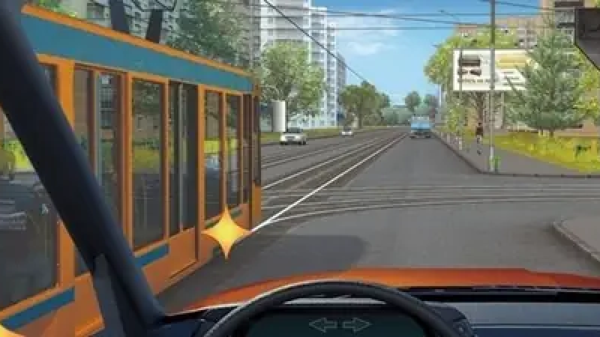 В данной ситуации Вы не обязаны уступать дорогу трамваю при движении: