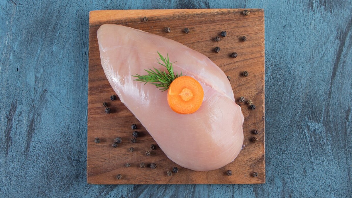 - Готовим куриное филе. Споласкиваем его водой и промакиваем бумажным полотенцем. Делаем ножом надрезы клеточкой.