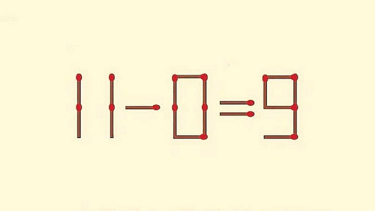 Посмотрите на спички внимательно. 11-0 не может быть равно 9. За 11 секунд найдите, куда передвинуть 1 спичку, чтобы равенство стало верным.
