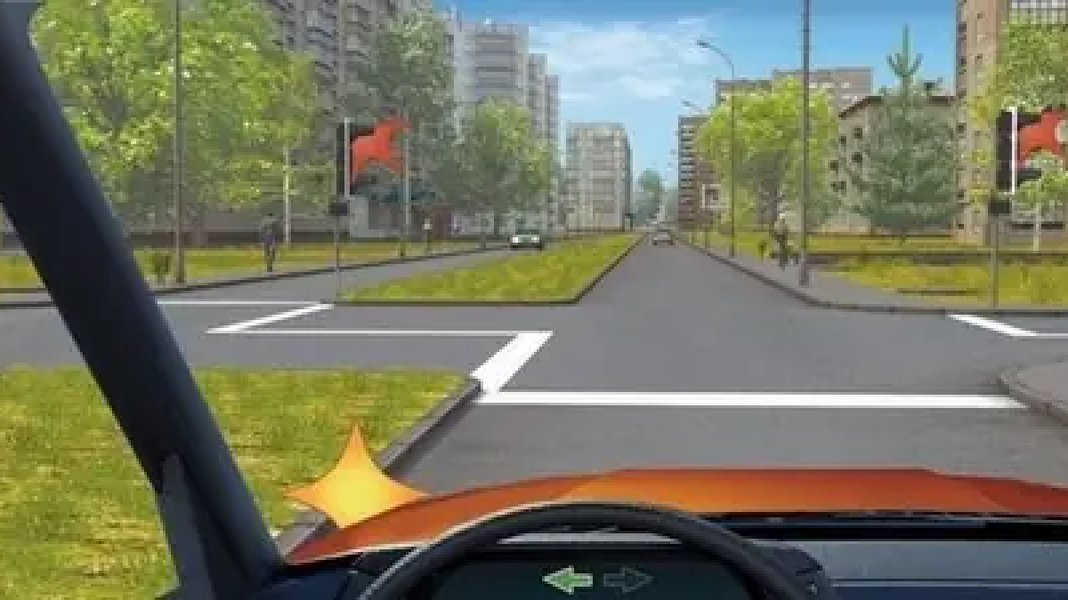 - Выехав на перекрёсток, остановитесь у стоп-линии и, дождавшись зелёного сигнала светофора, завершите манёвр
