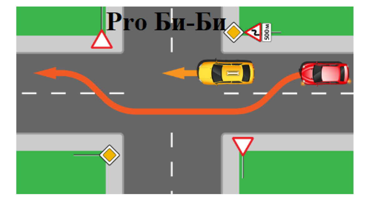 Следовательно, на перекрестке, о котором идет речь, красный автомобиль может обогнать желтый совершенно беспрепятственно, ничего не нарушив.