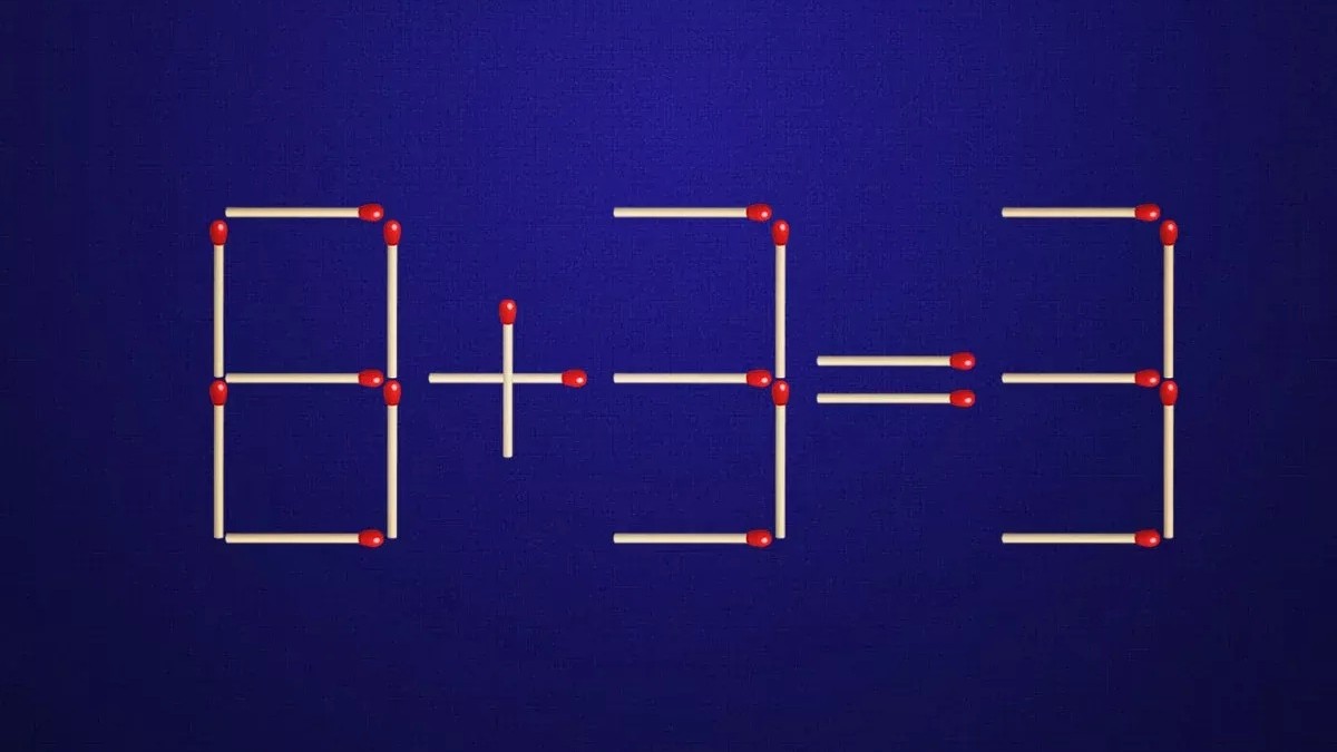 Дана визуальная головоломка, содержащая неверное равенство «8+3=3». Запись сделана спичками, вам требуется исправить ее на верную. Переставить при этом разрешается только одну спичку, будьте внимательны.