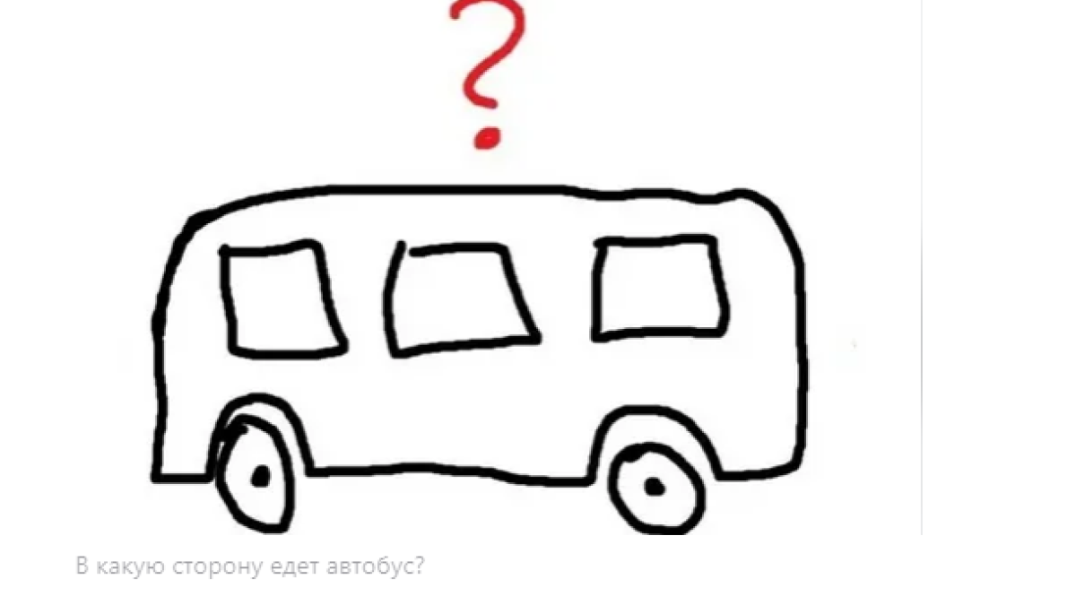 Итак, внимательно смотрим на картинку. В каком направлении движется этот автобус? Да, нарисован он схематично, но этого вполне достаточно. И пусть на рисунке не видно ни руля, ни выхлопной трубы. Попробуйте быть проще.