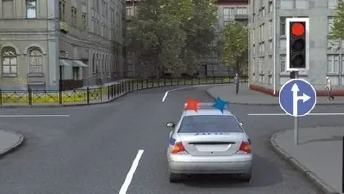 ТС со включённым синим проблесковым маячком, когда выполняют служебное задание, могут отступать от требований светофоров, знаков и разметки, если так не создают никому угрозу. В этому случае водитель спецтранспорта может двигаться в любом направлении. (Пункт 3.1 ПДД)